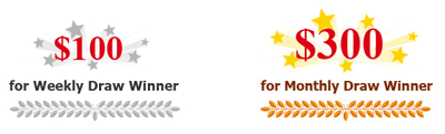 - Bonus: $100 to a weekly draw winner, $300 to a monthly draw winner.